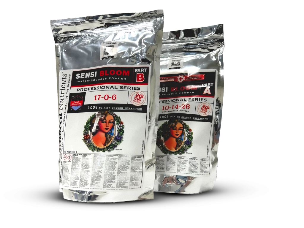 Advanced Nutrients Sensi Bloom A+B Soluble Powder, a comprehensive two-part nutrient meticulously crafted to enhance your plants’ flowering potential. This high-performance formula features top-quality ingredients that fortify blooming and fruiting rates, providing your plants with a vital boost of energy during the critical blooming phase. With high solubility, these products ensure easy nutrient absorption by your plants. Sensi Bloom A+B is a trusted choice among growers globally, employed during flowering and fruiting stages to elevate harvest yields and enhance the flavor of your fruits. Key Features: General Information: Suitable for any hydroponic growing substrate or system. Specifically formulated for the flowering and fruiting stages. Precise macro, secondary, and micronutrient ratios for optimal development. Infused with urea to maintain an acidic growing medium and stabilize pH levels. Contains three premium chelated forms of Iron for enhanced absorption. Benefits: Manufactured to the highest standards. Boosts energy levels in plants throughout the entire blooming/fruiting phase. Integrates Advanced Nutrients’ pH Perfect technology for precise pH control. Ensures delivery of all nutrients in a solubilized form. Promotes robust flower development and enhances fruit flavor. Compatible with a range of Advanced Nutrient boosters and supplements. How to Use: For optimal results, follow the manufacturer’s instructions provided on the packaging for dosing. Elevate your cultivation experience with Advanced Nutrients Sensi Bloom A+B Soluble Powder, designed to maximize your plants’ blooming potential and deliver exceptional harvest results.