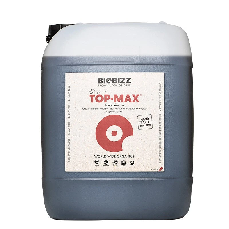 What is Biobizz Top Max? How it activates the flow of nutrients is essentially down to how it’s able to free up the minerals calcium, iron, and magnesium, in the soil, which stimulate the plant’s metabolism. The benefits of humic and fulvic acids in Top Max Top Max is incredibly effective because of the humic acids it contains. The main source of these acids is an ancient substance in the soil called Leonardite. This comes from prehistoric trees and vegetation that flourished during the carboniferous period, 300 million years ago. Fulvic acids also possess particular properties that contribute to healthy floral growth. These acids are taken from exceptionally rich sources of humate deposits found deep within the earth. Their natural electrical charge attracts nutrients and minerals present in both the microbiological soil base and applied organic fertilizers. Humic and fulvic acids work together to boost the energy in old plant cells while stimulating new ones to form. How to use it? Top Max can be used throughout the entire flowering period and works especially well combined with Biobizz substrate mixtures. In the first weeks of flowering, Biobizz advises a dose of 1ml per litre of water. As harvest approaches and before flushing, the dose can be increased to 4ml per litre of water.
