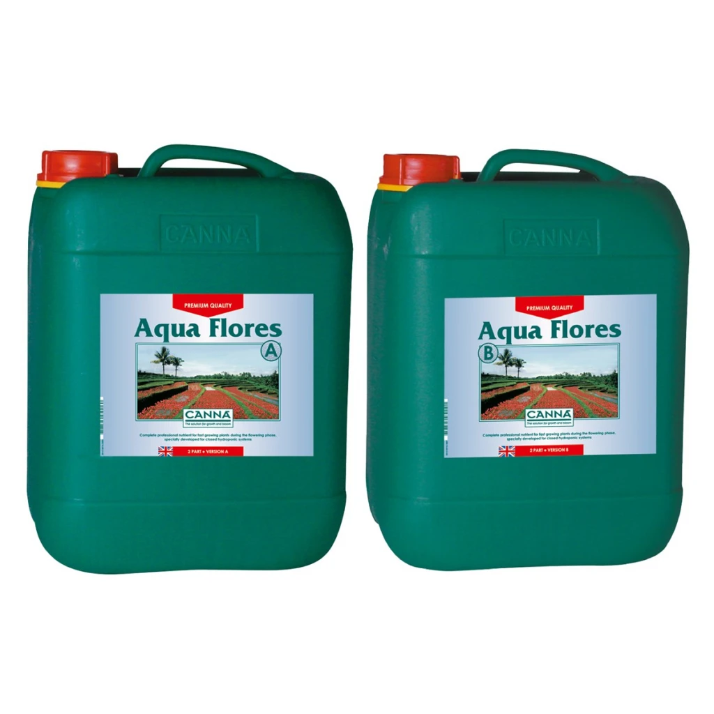 Canna Aqua Flores A&B – The Hydroponic Expert’s Choice Unleash the power of Canna Aqua Flores A&B, a meticulously developed nutrient solution trusted by growers worldwide. With decades of innovation and refinement, Canna stands as a beacon of excellence in the nutrient industry. Key Features: Proven Excellence: Canna is a well-established brand, revered by thousands of growers worldwide for its consistent results. Years of Innovation: This nutrient formula has been honed and perfected over many years, ensuring top-tier performance. Flowering Phase Specialist: Tailored for use during the flowering cycle, Aqua Flores A&B is your go-to choice for lush and productive growth. Hydroponic Mastery: Specifically designed for recirculating hydroponic systems, making it ideal for mediums like clay pebbles. Water Compatibility: Works seamlessly with both hard and soft water sources, providing versatility for various environments. Perfect Partner: Enhance its effectiveness by combining it with Canna’s range of boosters and additives. How Canna Aqua Flores A&B Enhances Growth: This 2-part nutrient solution is meticulously crafted for the flowering phase in hydroponic systems. It contains high-quality mineral ingredients that deliver essential macro and micro nutrients, ensuring healthy and vibrant plant growth. Aqua Flores A&B also includes silicon for robust stems and resistance to wilting, along with pH stabilisers to maintain optimal pH levels. Additionally, it incorporates humic and fulvic acids to optimise nutrient absorption and promote plant health. Usage Recommendations: Manufacturer-recommended dosage rates are intended for vigorously growing, peak-of-health plants. Slower-growing or less healthy plants may require lower dosage rates. Instructions for Use: Start using Aqua Flores A&B from the beginning of the budding stage. Fill your recirculating hydroponic system reservoir with water and add equal amounts of Part A and Part B to achieve the desired strength. Mix thoroughly. Use 2-4ml per litre (CF of 13-21) of both Part A and Part B. Adjust to 2ml per litre for light-feeding plants and 4ml per litre for heavy-feeding plants. Measure accurately using a syringe or beaker and use a CF/EC/PPM meter like the Bluelab Truncheon to monitor nutrient strength. Adjust as needed. Add any desired additives and boosters, mixing them in thoroughly. Adjust the pH to the required level using pH up or down as necessary. A pH meter such as the Horticare pH meter is recommended for precision. Renew the nutrient solution in your reservoir every 7 days to maintain plant health. Please note that both parts of Canna Aqua Flores A&B are designed to be used together in equal amounts to ensure a properly balanced nutrient solution. Deviating from this may result in nutrient deficiencies. Remember, never mix concentrated nutrients, boosters, or additives directly; always add them to your reservoir or feed water separately, stirring each component in before adding the next. Canna Aqua Flores A&B Usage: Recommended Dosage: 2-4ml per liter each of both Parts A & B Recommended CF Range: 13 – 21 Recommended pH Range: 5.2 – 6.2 A&B Combined NPK: 4-4-11 Elevate your hydroponic experience with Canna Aqua Flores A&B and witness the remarkable growth it brings to your plants.