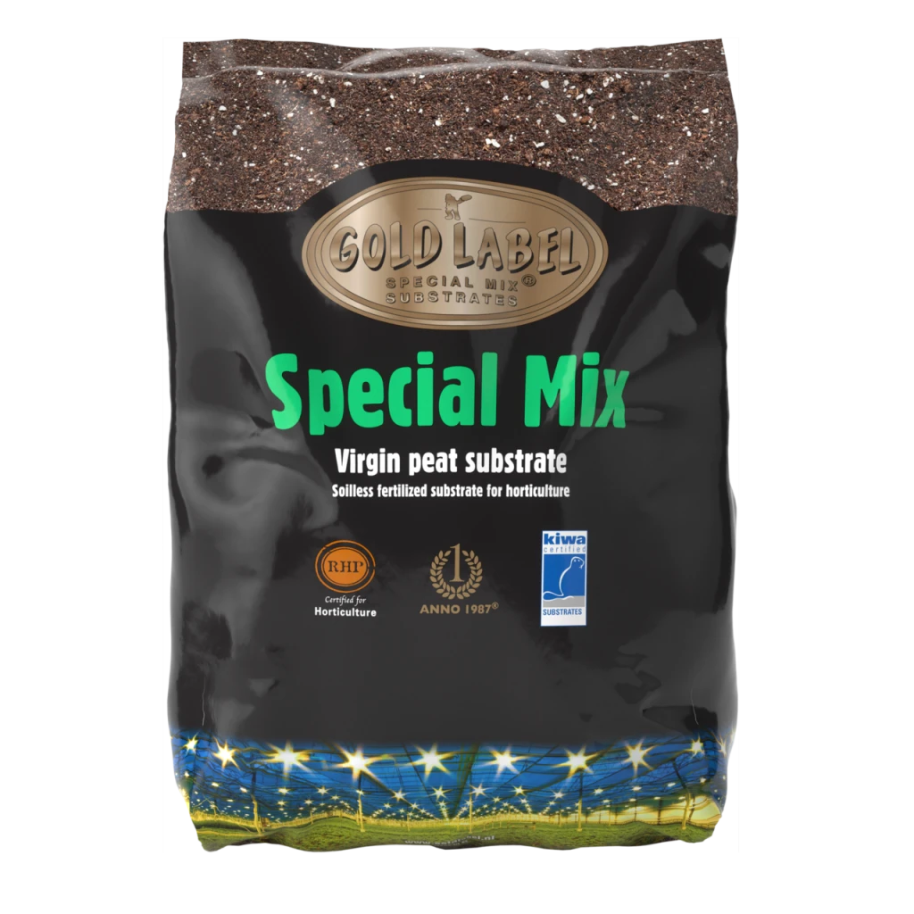Gold Label Special Mix – Premium Swedish White Peat Soil for Maximum Growth Gold Label Special Mix is a premium-quality soil blend made with Swedish virgin white peat of the finest grade, combined with high-grade perlite for exceptional aeration and water retention. Enriched with Swedish clay, lime, essential minerals, trace elements, and organic fertiliser, this ready-to-use soil mix provides everything your plants need for strong, healthy growth right out of the bag. Why Choose Gold Label Special Mix? Superior moisture retention – Swedish virgin white peat can hold up to 10x its weight in water, ensuring plants stay hydrated for longer. Optimal root-zone aeration – Perlite promotes excellent airflow, preventing compaction and encouraging robust root development. Complete nutrient profile – Pre-fertilised for 2–3 weeks of healthy growth, with added organic growth stimulants for maximum yield. Well-draining & light texture – Prevents water logging while keeping soil airy and easy to work with. Perfect for organic gardening – Ideal for vegetables, herbs, flowers, and ornamental plants. How It Works This expertly balanced soil mix offers the perfect combination of water-holding capacity and oxygen-rich structure, giving roots the ideal environment to thrive. The high-quality Swedish peat retains essential moisture, while perlite keeps the soil light and breathable, preventing root rot and encouraging faster plant establishment.