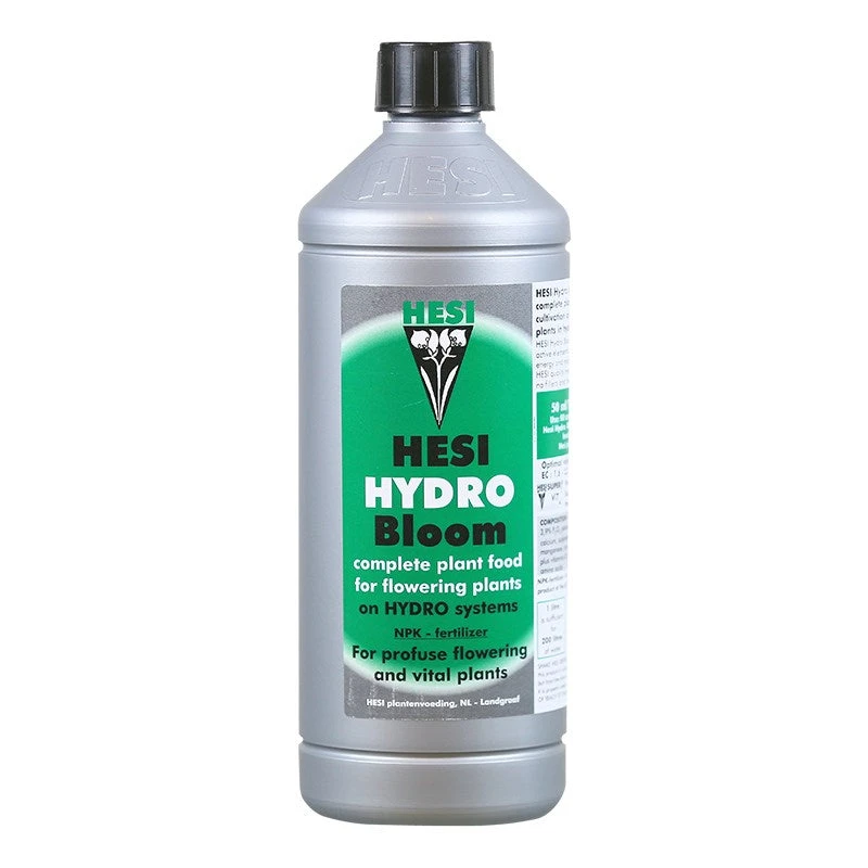 Hesi Hydro Bloom Hesi Hydro Bloom is enriched with plant-active elements that increase the plant’s energy and maintains healthy flora in the soil. Hesi quality means the purest ingredients, no fillers and therefore no residue. About Hesi Hydro Bloom Apart from the nutrition (nitrogen, phosphorus, potassium, magnesium, calcium, trace elements etc.), Hesi Bloom Complex has also been enriched with vital components (amino acids and vitamins) that stimulate the development of the plant in an optimal manner. The result of this is an exuberant bloom! In addition, Hesi Bloom Complex contains a pH corrector.The pH level of the feeding water is corrected to a slightly acidic value. The plant can absorb all the administered nutrients optimally around a slightly acidic value. Bloom Complex contains no unnecessary ballast and is therefore fully absorbed by the plant.