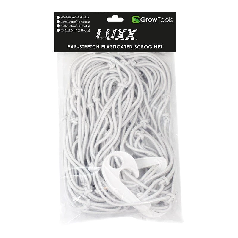 Luxx Scrog Nets A strong and reliable support for growing plants, Luxx Scrog Nets are both high-quality and durable, and they come with hooks in each corner for easy fixing in a growing space. These horizontal plant supports are popular in the community due to their ease of use and reliability in helping stabilise plants. KEY FEATURES High-quality horizontal plant support Reliable Easy to use TECHNICAL SPECIFICATION 60-100cm2 (4 hooks)