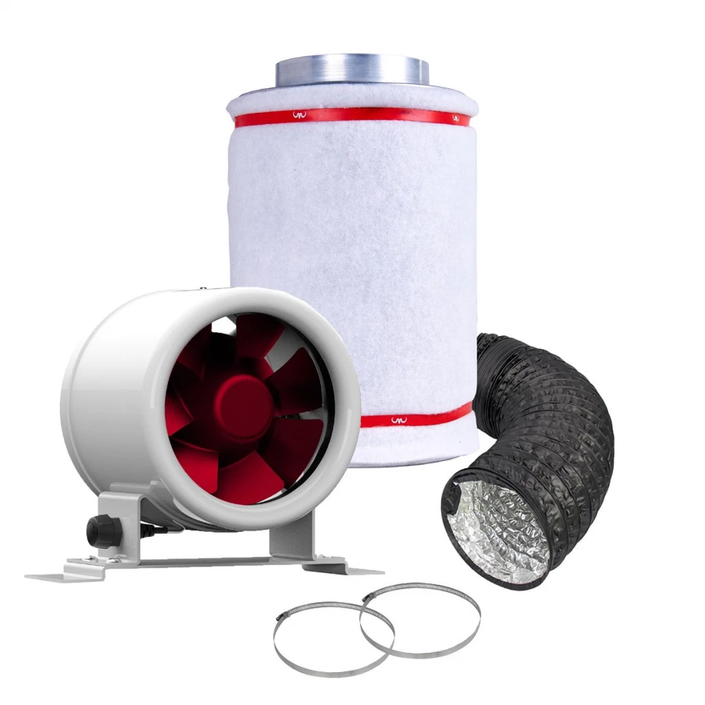 Mammoth juiced etc fan kits Unlock the full potential of your grow space with Mammoth Juiced EC Fan Kits, designed to deliver exceptional airflow and maintain ideal environmental conditions for your plants. These kits include the high-performance Juiced EC fan, a perfectly matched Mammoth carbon filter, your choice of ducting, and essential duct clips to create a seamless ventilation system. Elevate your growing experience with Mammoth Juiced EC Fan Kits and witness the difference in your yields. Mammoth Juiced EC Fans: Our Mammoth Juiced fans are equipped with cutting-edge EC motors, setting a new standard for efficiency and performance in grow room ventilation. These electronically commutated motors generate significant static pressure while consuming minimal energy, resulting in cost savings on electricity bills, a crucial consideration as energy costs continue to rise. These high-performance fans provide precise control over airflow, ensuring optimal environmental conditions for your plants, leading to healthier, more vigorous growth and increased yields. The integrated controllers allow for easy adjustment of airflow rates, from 0% to 100%, right out of the box, eliminating the need for a separate controller. Mammoth Carbon Filters: Included in every kit, Mammoth carbon filters are meticulously designed to match the Juiced fan’s size and output rates. These filters effectively eliminate odours and VOCs at the source, guaranteeing peace of mind for growers. Mammoth filters are engineered to minimise resistance to airflow, ensuring maximum ventilation without compromising odour control. Featuring a 50mm bed depth and premium-grade RC48 Australian carbon, renowned as the best carbon source worldwide, these filters deliver top-notch performance. With the largest filter neutralising up to 3250m³/h of air, you can trust in its efficiency and longevity. Your Choice of Ducting: Customise your kit by choosing between Combi ducting and acoustic ducting via the dropdown menu. Combi ducting offers durability with its reinforced plastic lining, preventing tearing and ensuring long-lasting performance. Acoustic ducting, on the other hand, features an internal layer of fiberglass that reduces noise levels, creating a quieter environment for your grow space. Each kit includes three duct clips to seamlessly connect and secure your ventilation system, ensuring efficient air movement without any disturbances. What’s Included in the Mammoth Juiced Fan Kit? 1 x Mammoth Juiced EC Fan 1 x Mammoth Carbon Filter 1 x Combi Ducting 2 x Aluminium Ducting Clamps Where to Use the Mammoth Juiced Fan Kit: These kits are the cornerstone of a premium ventilation system, making them perfect for grow rooms, grow tents, sheds, and any indoor growing spaces requiring superior ventilation and odour control. Why Choose the Mammoth Juiced Fan Kit? Premium EC fan kit for maximum performance Mammoth Juiced EC Fan delivers exceptional ventilation Mammoth Carbon Filter utilises market-leading RC-48 carbon for superior odour control Combi Ducting efficiently insulates and transports air Jubilee Clamps securely hold equipment in place Maintains optimal plant climates for higher yields Cost-effective operation for energy savings Quiet and unobtrusive operation Suitable for all indoor growing spaces Upgrade your grow space with Mammoth Juiced EC Fan Kits, available in various sizes to suit your needs. Choose the kit that matches your grow room size and requirements for the ultimate in ventilation and odour control. How to Use: Setting up your Mammoth Juiced EC Fan Kit is easy. Follow these steps for optimal performance: Cut a short piece of ducting to connect the inlet end of the Mammoth Juiced EC fan to the carbon filter using the provided duct clips. Use the remaining duct clip to connect the main length of ducting to the outlet end of the Mammoth Juiced fan. Hang the extraction system at the top of your grow area to remove hot air, ensuring that the ducting leads to an outside point for proper ventilation. Plug the provided lead into a mains power source and switch on to start using your ventilation system. For precise control of airflow levels (0-100%), connect the speed controller to the back of the unit. 4″ (100mm) Specifications: EC Fan Airflow: 275m³/h EC Fan Diameter: 4” (100mm) EC Fan Voltage: 220 – 240V EC Fan Pressure: 334Pa EC Fan Volume: 57dB EC Fan Speed: 5000RPM Carbon Filter Material: Aluminium, RC-48 Carbon Carbon Filter Max. Airflow: 160m³/h Ducting Material: Aluminium, Polyester Ducting Length: 5m 5″ (125mm) Specifications: EC Fan Airflow: 280m³/h EC Fan Diameter: 5” (125mm) EC Fan Voltage: 220 – 240V EC Fan Pressure: 363Pa EC Fan Volume: 54dB EC Fan Speed: 5000RPM Carbon Filter Material: Aluminium, RC-48 Carbon Carbon Filter Max. Airflow: 480m³/h Ducting Material: Aluminium, Polyester Ducting Length: 5m 6″ (150mm) Specifications: EC Fan Airflow: 594m³/h EC Fan Diameter: 6” (150mm) EC Fan Voltage: 220 – 240V EC Fan Pressure: 500Pa EC Fan Volume: 60dB EC Fan Speed: 5000RPM Carbon Filter Material: Aluminium, RC-48 Carbon Carbon Filter Max. Airflow: 550m³/h Ducting Material: Aluminium, Polyester Ducting Length: 5m 8″ (200mm) Specifications: EC Fan Airflow: 1205m³/h EC Fan Diameter: 8″ (200mm) EC Fan Voltage: 220 – 240V EC Fan Pressure: 520Pa EC Fan Volume: 65dB EC Fan Speed: 3800RPM Carbon Filter Material: Aluminium, RC-48 Carbon Carbon Filter Max. Airflow: 1000m³/h Ducting Material: Aluminium, Polyester Ducting Length: 5m 10″ (250mm) Specifications: EC Fan Airflow: 1808m³/h EC Fan Diameter: 10″ (250mm) EC Fan Voltage: 220 – 240V EC Fan Pressure: 510Pa EC Fan Volume: 65dB EC Fan Speed: 3200RPM Carbon Filter Material: Aluminium, RC-48 Carbon Ducting Material: Aluminium, Polyester Ducting Length: 5m 12″ (315mm) Specifications: EC Fan Airflow: 2987m³/h EC Fan Diameter: 12″ (300mm) EC Fan Voltage: 220 – 240V EC Fan Pressure: 677Pa EC Fan Volume: 78dB EC Fan Speed: 300