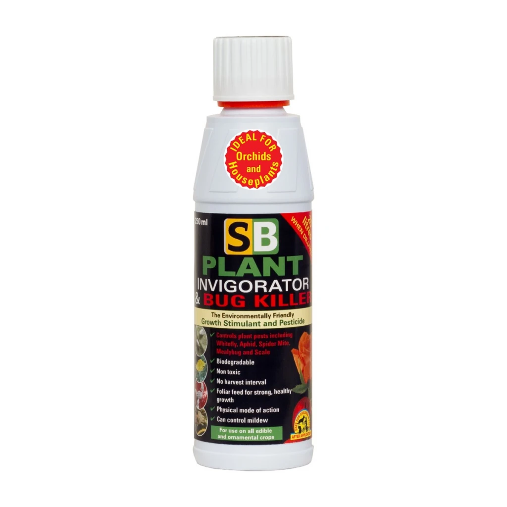 SB Plant Invigorator Concentrate No pest resistance When used correctly, pests will not develop resistance to this insecticide – meaning that it can be used again and again should re-infestations occur. Controls mildew As well as controlling pests, this foliar feed concentrate is designed to treat fungal diseases such as powdery mildew. Mildew commonly occurs in household and garden plants, especially in periods of low sunlight and when air circulation is poor. It can inhibit plants’ water and nutrient intake – so targeting fungus at the source is important for all areas of plant health. Biodegradable, non-toxic, and environmentally friendly SB concentrate solution is free of toxic chemical ingredients. It is a non-biological method of controlling pests, treating fungus and mildew, and enhancing the strength and appearance of plants. It leaves no harmful residues behind after use. This means that beneficial insects can then be introduced if needed with no dangerous consequences to them. Where to use SB Plant Invigorator Concentrate? The solution is safe to use on household and garden plants and on edible fruits, flowers, herbs, and vegetables. How to use SB Plant Invigorator Concentrate? SB Plant Invigorator is safe to use on most plants, but it is advised to test a small area of the leaf before applying fully. Shake bottle well before use. Dilute 10ml of SB Plant Invigorator Concentrate per 1 litre of solution. Thoroughly spray the upper and lower surfaces of the leaf once per week. Reseal container after use. Store in a cool, dry place out of direct sunlight, between 10℃ and 25℃. This substance is harmful to skin and eyes and precautions should be taken at all times when in use. Wear protective gloves and keep away from food and drinks. If the product makes contact with skin, wash thoroughly with soap and water. If the solution enters the eyes, rinse very carefully with water for several minutes. # When to use SB Plant Invigorator Concentrate? For best results, apply to leaves once per week. SB Plant Invigorator has no harvest interval and is suitable for use throughout the year. Why choose SB Plant Invigorator Concentrate? Plant pesticide and mildewicide; Controls pest species including Whitefly, Aphid, Spider Mite, Mealybug, Scale, and Psyllids; Pests will not become resistant; Safe for edible fruits, vegetables, herbs, and flowers; Suitable for use throughout the year; Gives cleaner, shinier appearance; Excellent shelf life. Product Specifications: Brand: SB Plant Invigorator