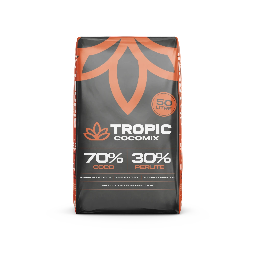 Tropic Cocomix 70% Coco 30% Perlite Enhanced with 30% perlite, our premium coco offers the perfect balance of aeration, drainage, and water retention. Perlite helps water travel deeper into the substrate, boosting nutrient absorption and increasing drainage efficiency. Its highly porous structure promotes oxygenation to support healthy root growth. A naturally low EC gives you full control over plant nutrition, allowing you to fine-tune your feed to maximize growth and ensure consistent results. This fully sustainable medium suits a wide range of plants and growing methods. Key Features: Premium 70/30 Cocomix Superior Drainage Maximum Aeration PH: 5,8 (5,3-6,3) EC: 0,8 (0,6-1,0) mS/CM composition coco premium 0.70 m3 perlite 1-6 mm 0.30 m3 pg-mix 1 1.00 kg/m3