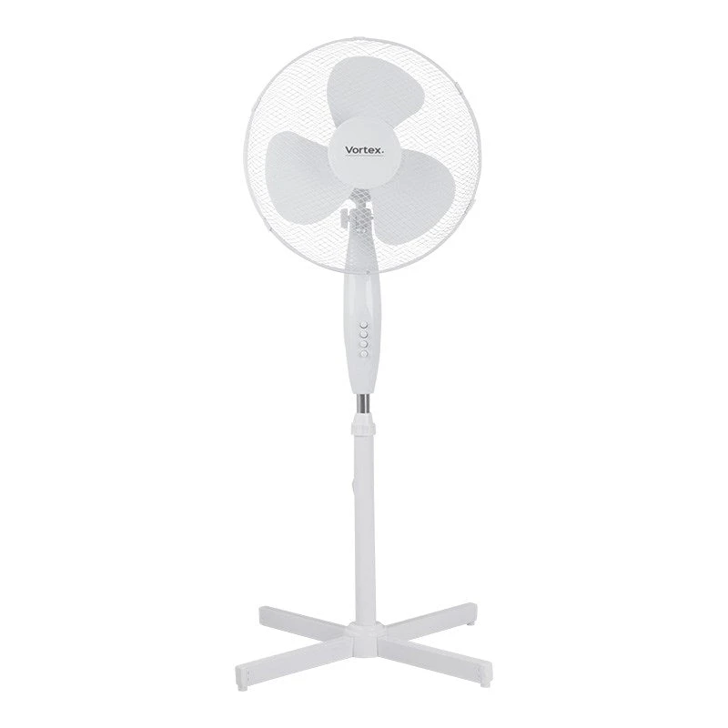 Vortex 16” Oscillating Pedestal Fan With X-Base The Vortex Pedestal, floor standing fan has an adjustable 400mm (16”) head with a finger-safe mesh grill. It has three-speed settings and the height of the fan can easily be adjusted. KEY FEATURES 3 speed fan. Super quiet. Poly-coated safety grill. Full 90-degree oscillation. 30-degree vertical adjustment.